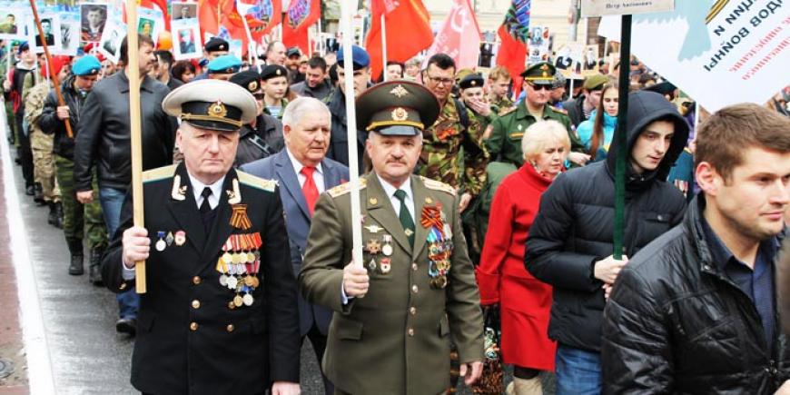 Многие несли штендеры с фотографиями своих отцов, дедов и прадедов-участников Великой Отечественной войны. Впервые в таком торжественном мероприятии рядом с фотографиями ветеранов Великой Отечественной, как бы продолжая связь времен и поколений, были фотографиикалужан, погибших в локальных войнах и военных конфликтах.Штендеры с их фотографиями были в руках кадетов и юнармейцев.