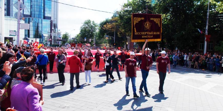 В 14 часов по улице Красной началось шествие «Бессмертного полка». 100 тысяч краснодарцев вышли на любимую улицу с портретами своих предков, участников и победителей в Великой Отечественной войне. Более 520 тысяч человек приняли участие в шествиях «Бессмертного полка» в городах и станицах Краснодарского края.