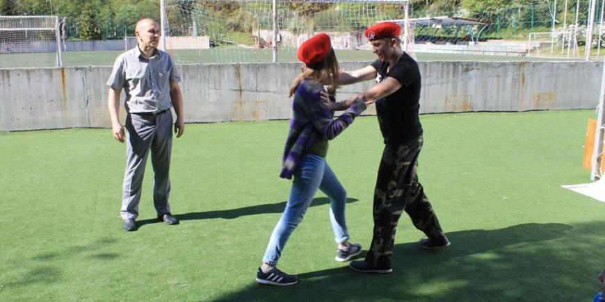 Руководитель Адлерского отделения движения «Юнармия» Ольга Захран вместе с ветеранами боевых действий, членами Сочинского городского отделения, члены Краснодарского краевого отделения Всероссийской организации «БОЕВОЕ БРАТСТВО» им. Героя Советского Союза В.И. Варенникова провели с учащимися школ №18 и №25 тренировку по армейскому рукопашному бою на стадионе в Кудепсте.