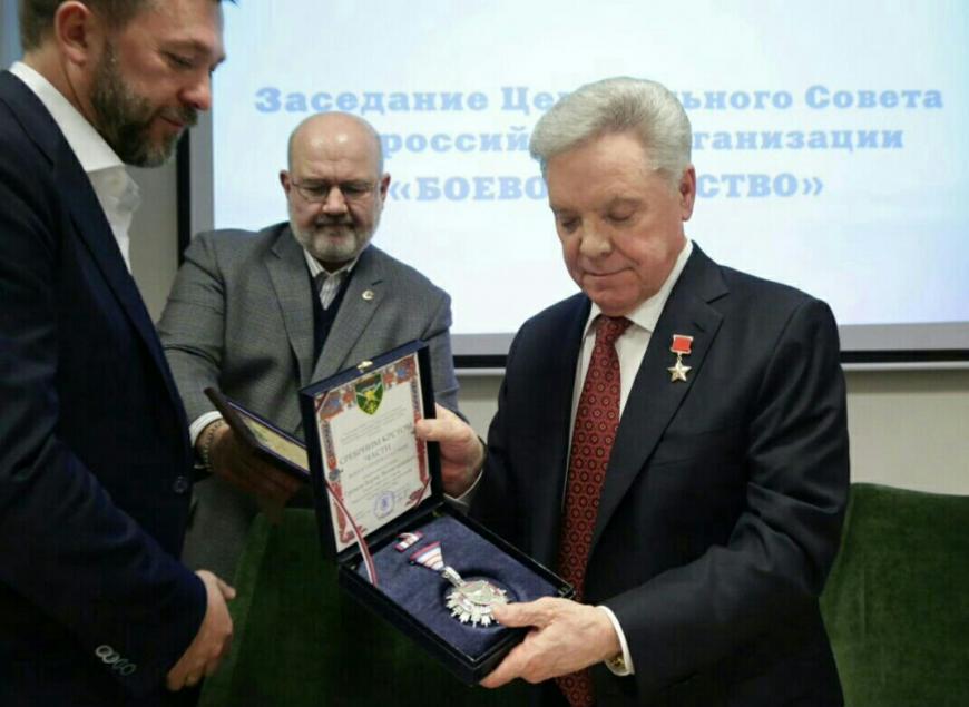 Заместитель председателя «БОЕВОГО БРАТСТВА» Геннадий Михайлович Шорохов на заседании Центрального Совета организации вручил Борису Всеволодовичу Громову награду от сербских ветеранов — Серебряный крест чести. Награждение председателя Всероссийской общественной организации ветеранов состоялось в связи с 20-летним юбилеем организации.