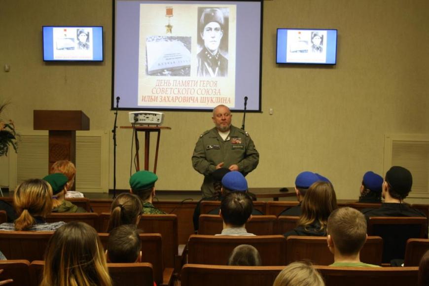 В среду, 21 февраля в Национальном музее республики Алтай имени А.В. Анохина прошел День памяти Героя Советского Союза Ильи Шуклина. На мероприятие пришли учащиеся лицея №6, названного именем своего легендарного выпускника. О подвиге Ильи Шуклина ребятам рассказал руководитель регионального отделения Алтайского «БОЕВОГО БРАТСТВА» и «Поискового движения России» в Алтае Александр Вилисов.