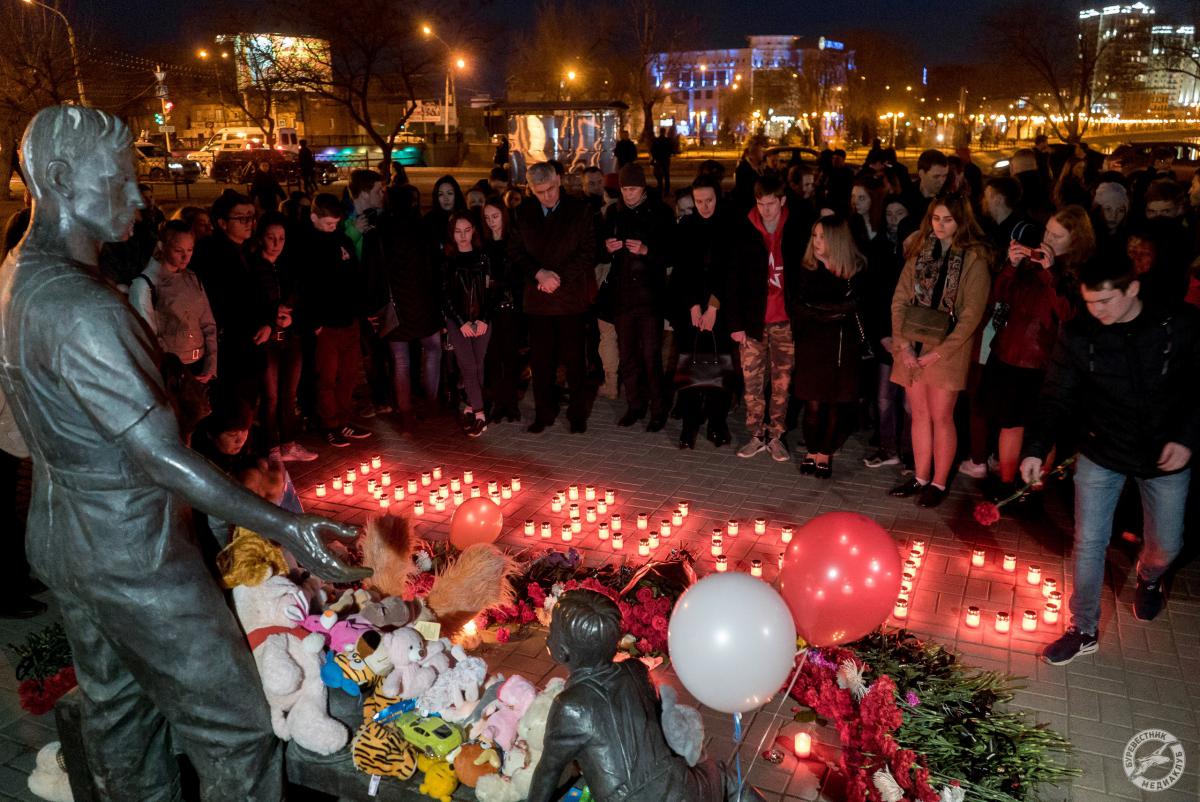 В Астрахани 27 марта у композиции, посвященной семье, прошли траурные мероприятия в память о погибших в торговом центре «Зимняя вишня» в городе Кемерово.
