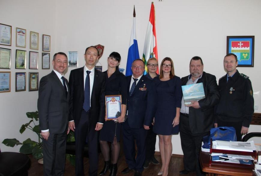Здесь же челябинцы вручили ряду сотрудников местного самоуправления грамоты за вклад в развитие сотрудничества от Совета муниципальных образований Челябинской области и памятные подарки от побратимов из Миасса, от движения «За возрождение Урала». Герой России Сергей Зяблов и пограничник запаса Денис Богатырев наградили памятными медалями и златоустовскими ножами сотрудников пограничного управления ФСБ России в преддверии 100-летия Погранвойск. Они пожелали защитникам рубежей Родины успехов в службе, передали уроженцам Южного Урала вымпел от пограничного управления ФСБ России по Челябинской области.