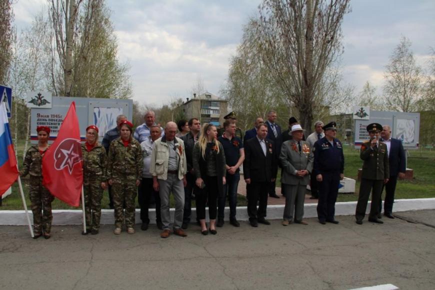 Далее участники проследовали в город Гай. Здесь в сквере возле местного отделения ДОСААФ также прошел торжественный митинг в честь Великой Победы. Троекратным залпом почтили память погибших в кровавых схватках оренбуржцев.