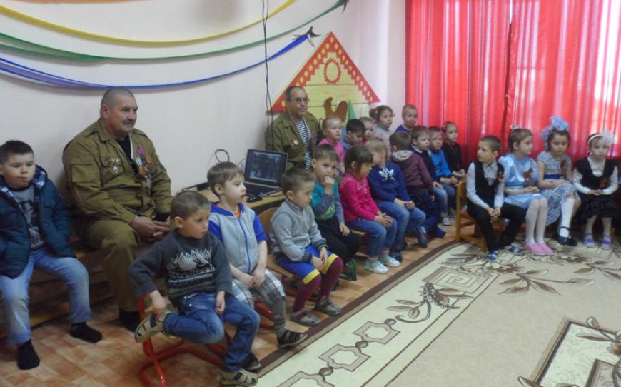 В Челябинской области члены Варненского местного отделения «БОЕВОГО БРАТСТВА» Олег Рыжов и Александр Шейкин 10 мая стали гостями на празднике в честь Дня Победы в детском саду села Варна.