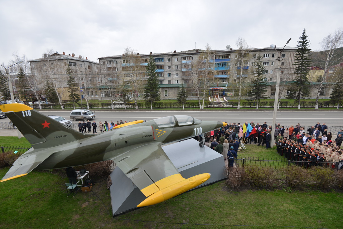 В Горно-Алтайске 10 мая открыли памятник летчикам Великой Отечественной войны у здания Министерства здравоохранения республики Алтай. На постамент установили учебно-тренировочный реактивный самолет L-39, на котором в 70-е годы проходили обучение советские летчики.