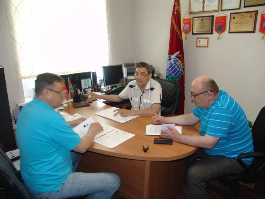Председатель Исполкома Оренбургского регионального отделения «БОЕВОГО БРАТСТВА» Анатолий Успанов и председатель правления городского отделения организации Ринат Бекмухамедов 21 мая провели в Оренбурге рабочую встречу с юристом правового центра «Точка опоры — Оренбуржье», членом регионального отделения Евгением Зинзером.