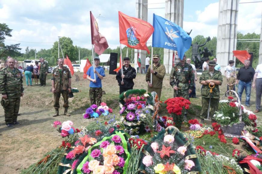 У мемориального комплекса «Барсуки» Мосальского района Калужской области 22 июня прошла церемония захоронения останков 43 бойцов Красной Армии, найденных поисковыми отрядами, а также состоялся митинг, посвященный Дню памяти и скорби.