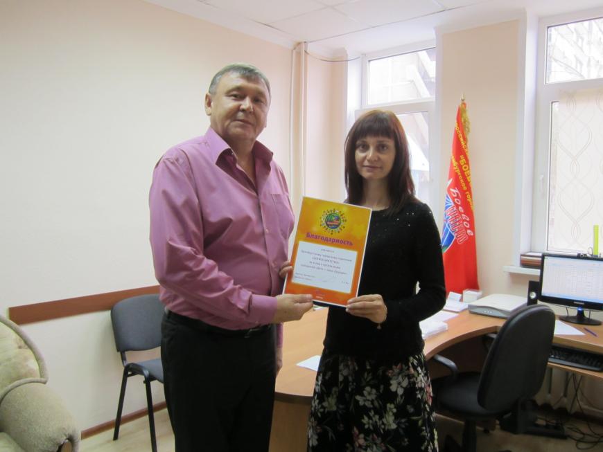 В офисе Оренбургского городского отделения «БОЕВОГО БРАТСТВА» менеджер компании «Уфанет» Александра Харченко 30 октября вручила благодарность председателю правления отделения Ринату Бекмухамедову за вклад в организацию праздника «Дети — наше будущее».
