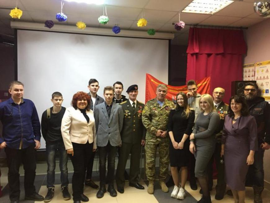 Ветераны Нижегородского регионального отделения Всероссийской общественной организации ветеранов «БОЕВОЕ БРАТСТВО» 20 февраля совместно с нижегородскими мотоклубами «Ночные волки» и «Ночные Валькирии» провели урок мужества в колледже теплоснабжения и автоматических систем управления по адресу: г. Нижний Новгород, ул. Горная, д. 56а (юр. адрес: ул. Нартова, 21, руководитель Комиссаров Ю.А.).