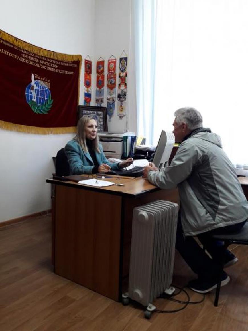 Юрисконсульт Волгоградского областного отделения «БОЕВОГО БРАТСТВА» Светлана Моисеева провела 18 октября еженедельную плановую юридическую консультацию, разъяснив супруге военнослужащей Базаровой М.В., проживающей в городе Знаменске Астраханской области, порядок признания нуждающимся в получении жилого помещения.