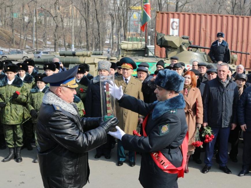 16 марта в городе Владивостоке Пограничное управление ФСБ России по Приморскому краю приняло символ эстафеты от Пограничного управления ФСБ России по Сахалинской области.