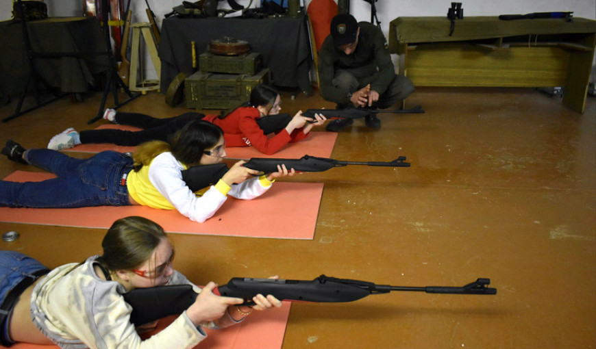 В начале занятий Виктор Непытаев ознакомил девушек с кодексом стрелка, показал на примере пистолета, автомата и винтовки технику безопасности и правильное обращение с оружием. Показал упражнения стрельбы в положении лежа, стоя и сидя.