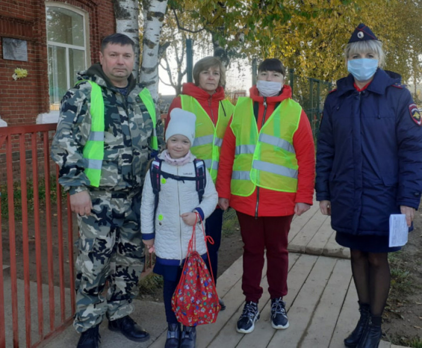 23 сентября у здания начальной школы посёлка Гайны Пермского края ветераны Гайнского районного отделения «БОЕВОГО БРАТСТВА» вместе с сотрудником ДПС проверяли у детей наличие световозвращающих элементов, правильное использование ремней безопасности в машине и безопасный маршрут.