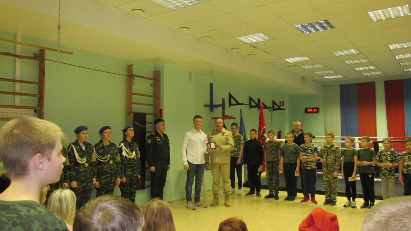Двоих старших курсантов Павла С. и Александра П. наградили медалями «Юнармейской доблести» третьей степени. Курсантов поздравил руководитель регионального отделения «Юнармии» Михаил Дийков, член совета Карельского отделения «БОЕВОГО БРАТСТВА».