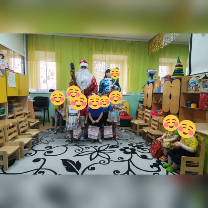 Там они в костюмах деда Мороза и Снегурочки раздали подарки детям от 1,5 до 5 лет, после чего отправились в Киселевский детский дом «Радуга», где воспитываются 65 детей в возрасте от 5 до 18 лет, которым также раздали подарки и подарили огромный торт.