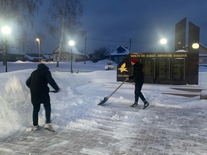 Волонтеры очистили от снега воинские мемориалы села Клязьминский Городок.