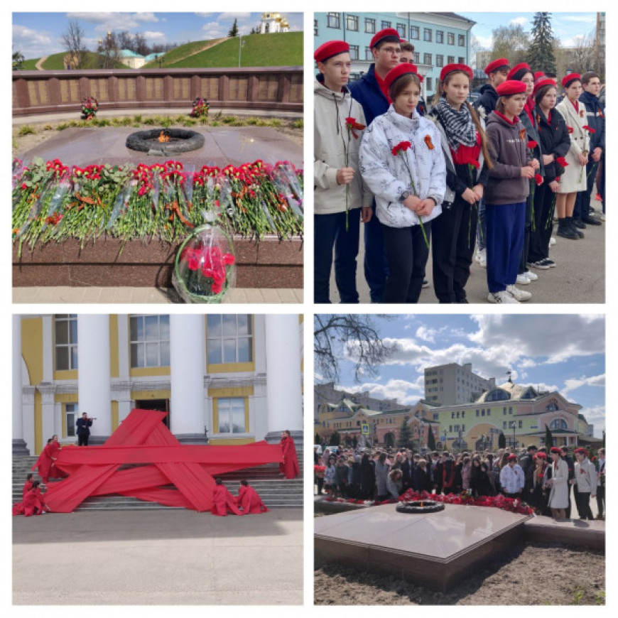В преддверии празднования Дня Победы вместе с жителями города ветераны и молодёжь возложили гвоздики к мемориалу Вечный огонь в память о дмитровчанах, погибших в годы Великой Отечественной войны.
