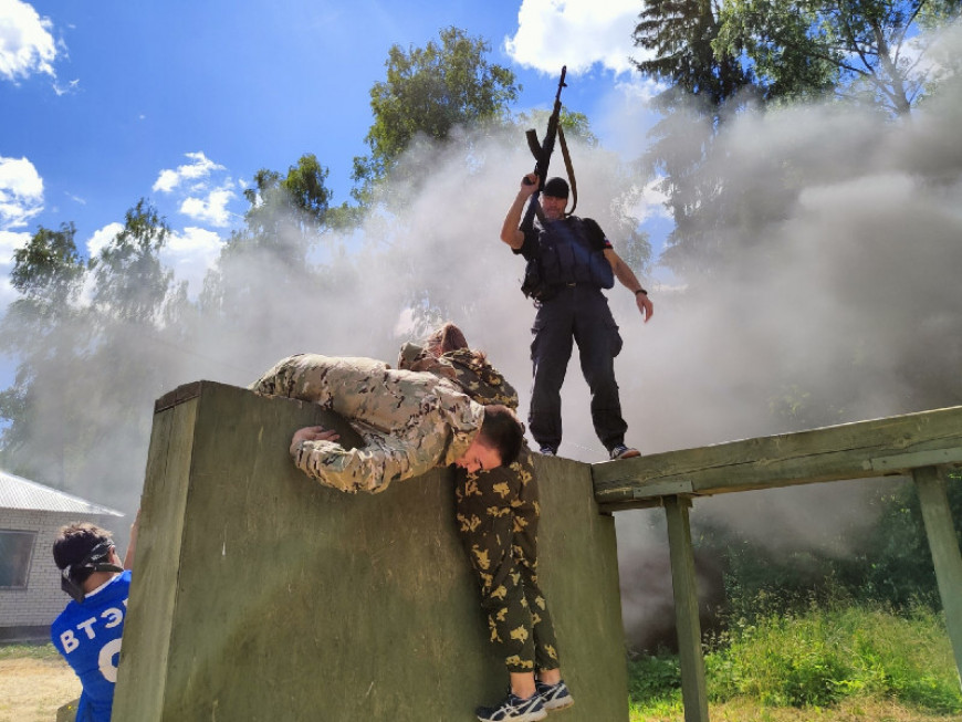 Долгожданная полоса препятствий, настоящее испытание для бойцов. Под звуки взрывов и выстрелов, в задымленной местности, команды прошли различные точки, где требовалась как моральная, так и физическая подготовка.