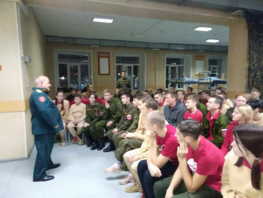 29 октября ветераны Г. Наджафов и И. Кузьмин провели урок мужества «Диалог с героем» для участников сборов. Они рассказали подрастающему поколению о текущей ситуации, о своем участии в боевых действиях и о важности любви к Родине, подготовке молодых людей к её защите.