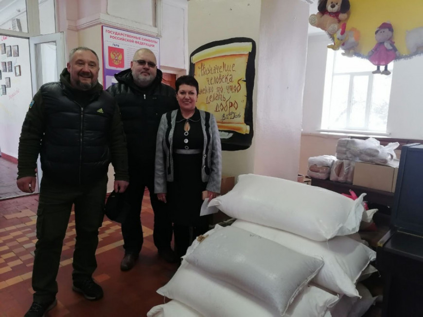 Очередная партия гуманитарного груза доставлена в Луганск. На этот раз поездка была целевой — члены Котовского отделения «БОЕВОГО БРАТСТВА» передали в Луганскую специализированную школу №5 муку, крупу, масло, овощи, сгущенку и другие продукты питания.