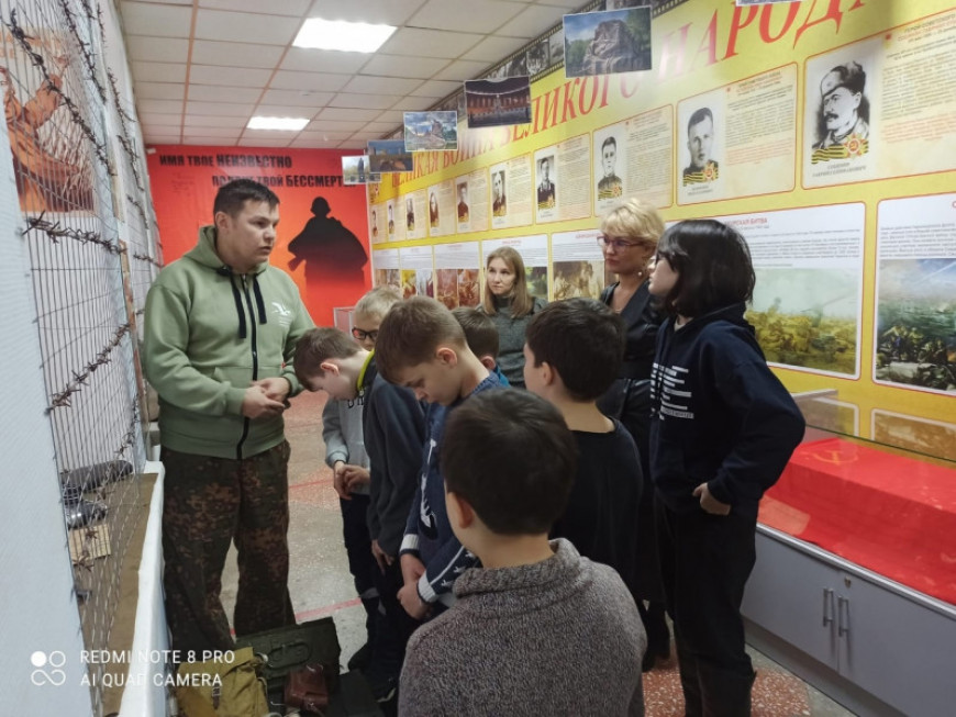 Затем член местного отделения «БОЕВОГО БРАТСТВА» и руководитель городского военно-патриотического клуба «Север» Андрей Попов познакомил участников с экспозицией музея «Воинская доблесть». Наибольший интерес гости проявили к экспонатам, раскрывающим малоизвестные страницы военной истории России – «Без срока давности» и «Север для Победы».