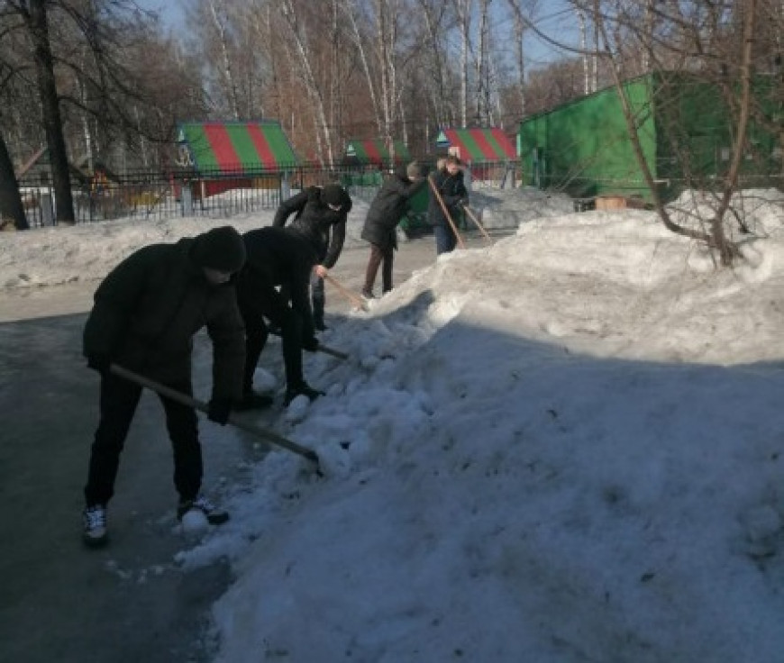В мероприятии участвовали активисты «Волонтерской роты «БОЕВОЕ БРАТСТВО». Вместе убирали снег, расчищали детские площадки и дорожки.