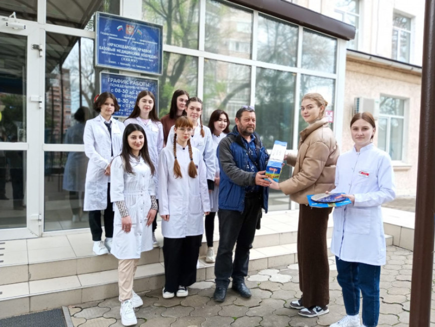14 апреля студенты Краснодарского медицинского колледжа вручили представителю краевого отделения »БОЕВОГО БРАТСТВА» Юрию Васину углошлифовальную машину и диски к ней, приобретенные на личные средства для передачи отделу жизнеобеспечения Сиротинского района Северодонецка ЛНР в качестве гуманитарной помощи.