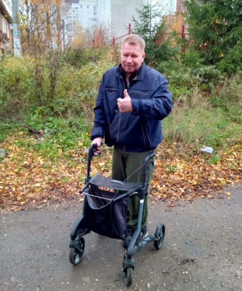 21 октября ему передали роллатор — устройство для передвижения для людей с инвалидностью. Теперь он может совершать прогулки во дворе и до ближайшего магазина. Роллатор норвежского производства ему подарен Пермскими общественными организациями «БОЕВОЕ БРАТСТВО», «ВоИн», и Союз пограничников Прикамья.
