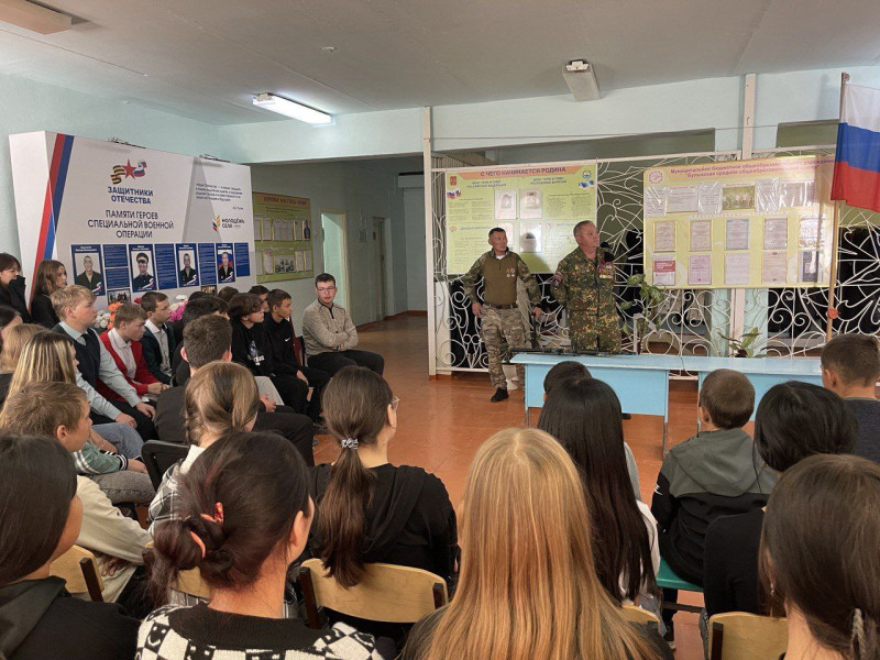 На уроке присутствовали 120 учеников 6-10-х классов, с которыми ветераны боевых действий беседовали о попытке вербовки подростков иностранными разведками, разбирали происшествие в Омске с поджогом вертолета подростками.