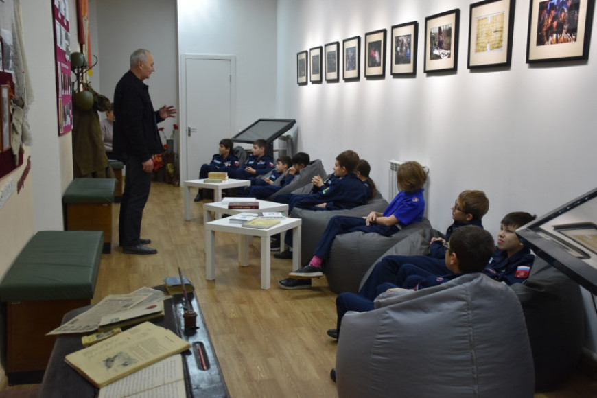 Поисковый музей посетили студенты третьего курса Оренбургского государственного университета и пятиклассники из 87-й школы Оренбурга. Всего в уроке мужества приняли участие 30 студентов и школьников.