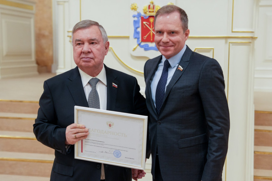 12 декабря в рамках торжественного заседания, посвященного 30-летию Заксобрания Санкт-Петербурга, сенатор Андрей Кутепов от имени председателя Совета Федерации Федерального Собрания РФ Валентины Матвиенко вручил награды верхней палаты российского парламента.