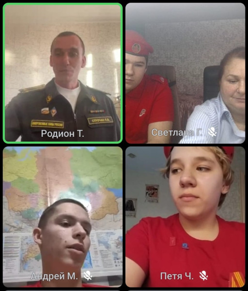 В секции телемоста «Взаимодействие с образовательными учреждениями по вопросам патриотического воспитания и профориентационной работы» выступил заместитель командира 72-й отдельной бригады, юнармейцы из Приморского края и Новгородской области.