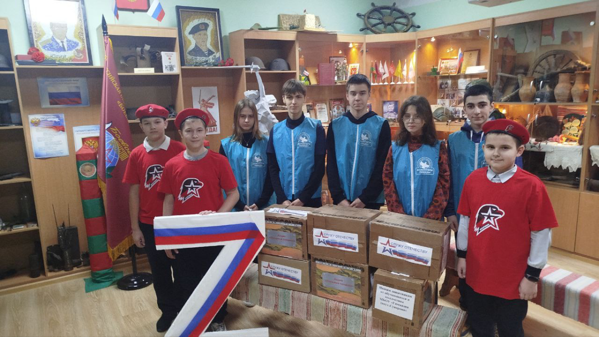 В завершении беседы учителя и ребята передали бойцу посылку, которую накануне собрали в рамках традиционной акции «Посылка солдату». Поисковики, юнармейцы и волонтеры собрали сладости и предметы первой необходимости для выпускников гимназии — сегодня шесть гимназистов проходят срочную службу в Вооруженных силах Российской Федерации. Солдатам будет очень приятно понимать то, что их помнят и ждут.
