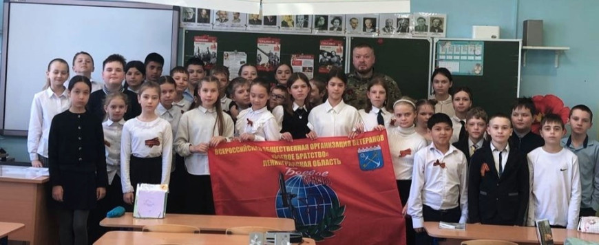 29 мая ребята и учителя 4В и 4Д классов Кузьмоловской средней школы Всеволожского района Ленинградской области встречали почетного гостя — участника СВО, члена Кузьмоловского местного отделения Ленинградского «БОЕВОГО БРАТСТВА» Белова Святослава.