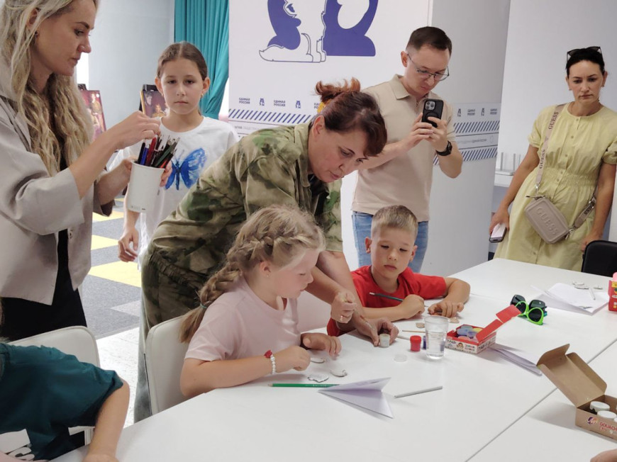 После творческой части дети написали письма для военнослужащих, вложили в них значки с российским триколором и вручили представителям «БОЕВОГО БРАТСТВА». Елена и Майя рассказали, как солдаты ждут детские письма и хранят их как талисманы. В ближайшее время они доставят детские послания в госпитали раненым бойцам.