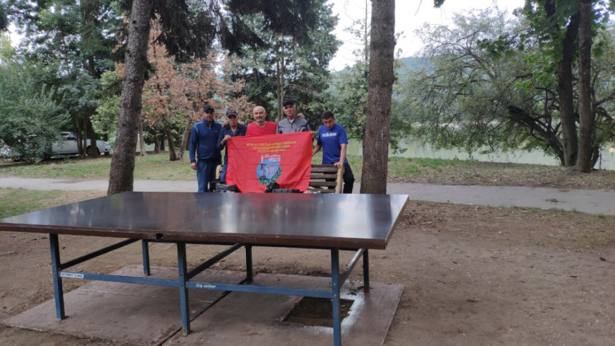 30 августа в городском парке культуры и отдыха Нальчика ветераны “БОЕВОГО БРАТСТВА” Азретали Габоев и Александр Сотников, показывая пример бережного отношения к общественному имуществу в парке, восстановили разбитый неустановленными вандалами теннисный стол на спортивной площадке.