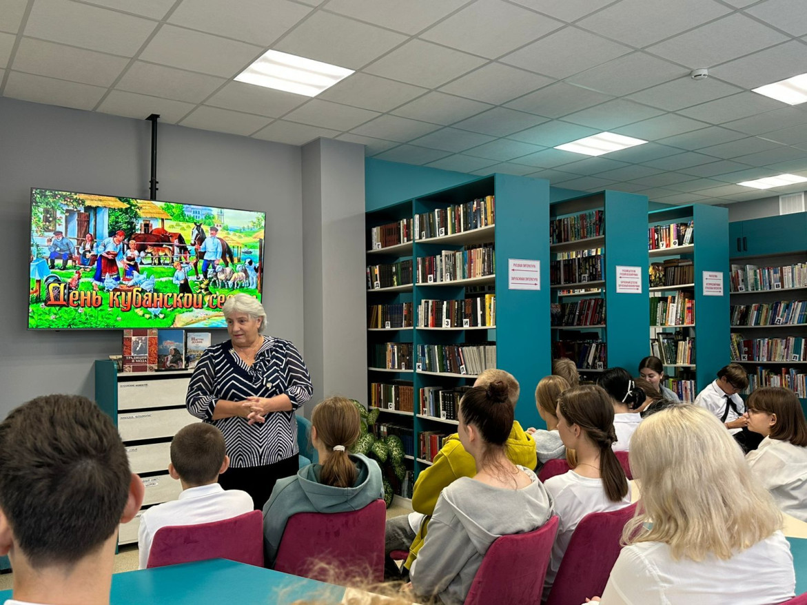 Елена Копотева рассказала школьникам о традициях казачьих семей. Рассказ сопровождался демонстрацией презентации, из которой ученики узнали о том, как жили казачьи семьи, увидели быт казаков, познакомились с обрядами такими, как «Кристины», «Посажение на коня». Затем дети ответили на вопросы викторины.