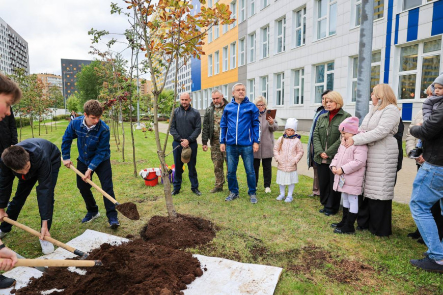 25 сентября на аллее Героев СВО в школе №32 в Мытищах посадили каштановое дерево в память о героически погибшем Александре Володине.