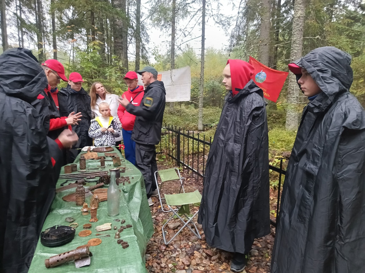 Несмотря на дождливую погоду, кадеты прошли по линии обороны Петрозаводска с экскурсией, которую провёл И. Герасев, а потом изучили все двенадцать станций с материалами по поисковой работе. Затем посетили организованную выставку артефактов и осмотрели находки времён Великой Отечественной войны.