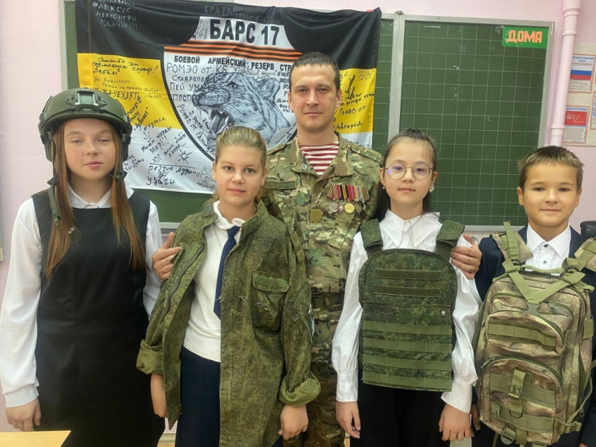 Роман Ежов рассказал ребятам об участии в Спецоперации, команде “Барс-17”, своей личной истории уроженца Луганской области. Также он привел истории из жизни югорских бойцов на территории Донбасса и наглядно продемонстрировал тактическую экипировку бойца СВО.