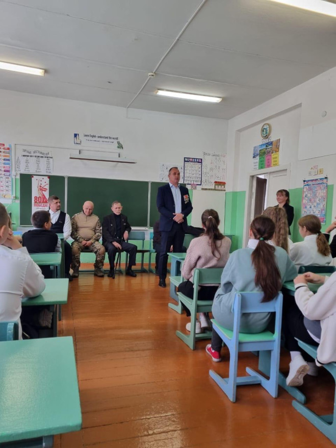 На митинг, посвященный этому событию, были приглашены ветераны местного отделения “БОЕВОГО БРАТСТВА” Чурбанов Р.Н., Малахов С.В., Дементьев В.И. Ветераны выступили на митинге, а затем провели урок мужества для 26 учеников местной школы.