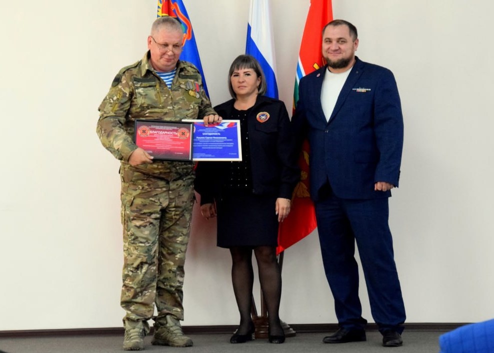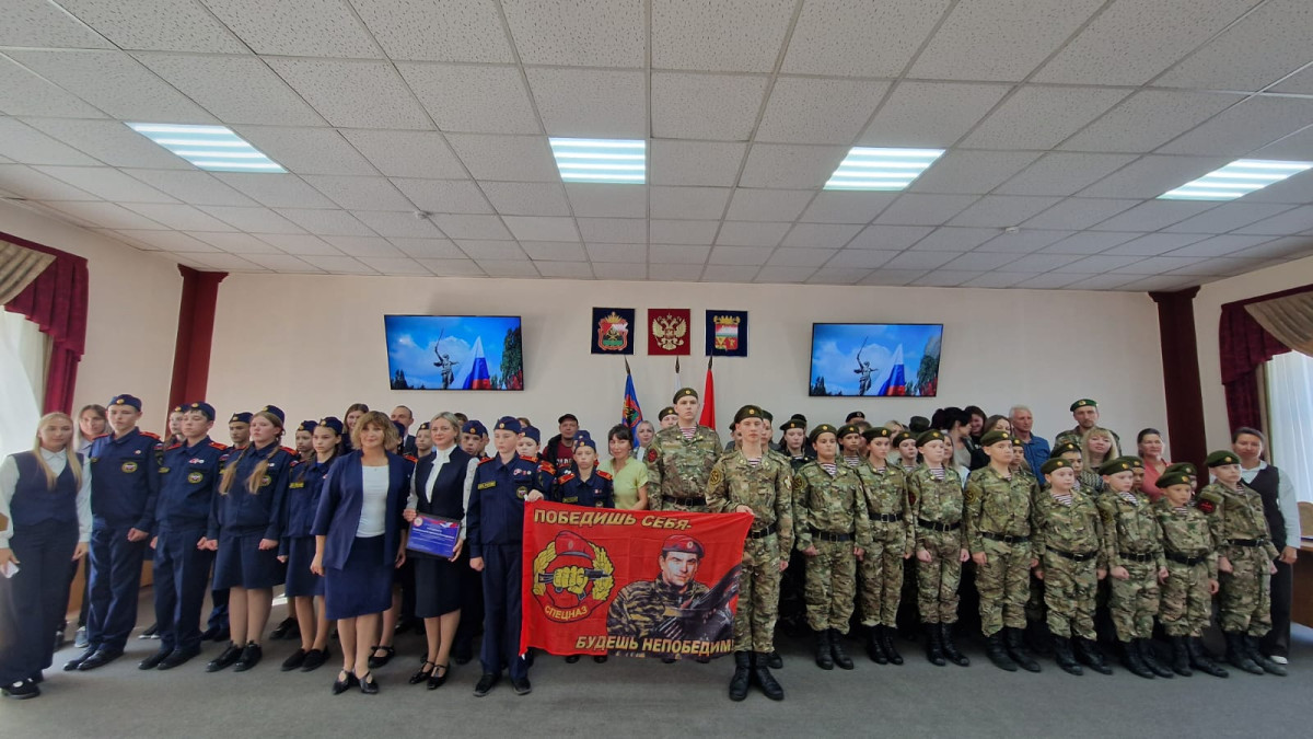 Представители ветеранской организации Дмитрий Трумин, Дмитрий Тысячный и Дмитрий Бодиар вручили кадетам флаг с девизом подразделений сил специального назначения Росгвардии. Несколько кадет были поощрены благодарственными письмами.