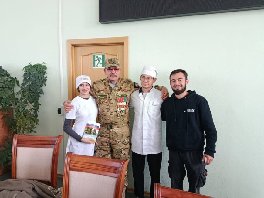 Занятие для первокурсников провели участники СВО, члены местного отделения «БОЕВОГО БРАТСТВА» Даниил Иванус и Равиль Сафин.