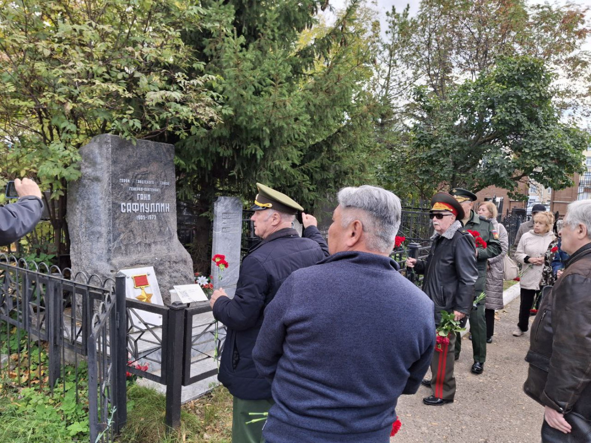 Участники посетили  могилу ветерана-«афганца» Эдуарда Пугачёва, привели её в порядок и возложили цветы. Затем были возложены цветы к захоронениям генерал-майора, участника Великой Отечественной войны, Героя Советского Союза Владимира Ахметовича Саидгареева и генерал-лейтенанта, участника Великой Отечественной войны, Героя Советского Союза Гани Бекиновича Сафиуллина.