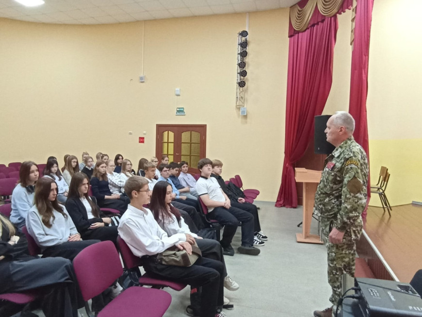 30 сентября член Орловского областного отделения “БОЕВОГО БРАТСТВА” Игорь Васюков, ветеран боевых действий в Афганистане и на Северном Кавказе, провел урок мужества, посвященный знаменательному событию — Дню воссоединения ДНР, ЛНР, Запорожской и Херсонской областей с Российской Федерацией, для обучающихся старших классов школы № 27 в Орле.