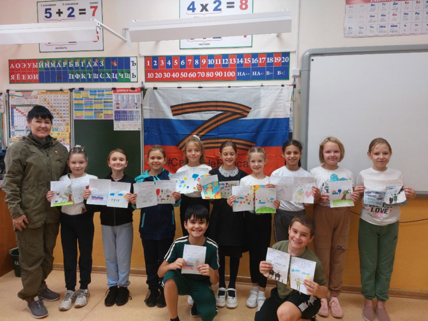 В конце встречи школьники передали рисунки с пожеланиями военнослужащим. Ольга Липатова заверила, что в ближайшее время эти рисунки отправятся на передовую вместе с гуманитарным грузом.