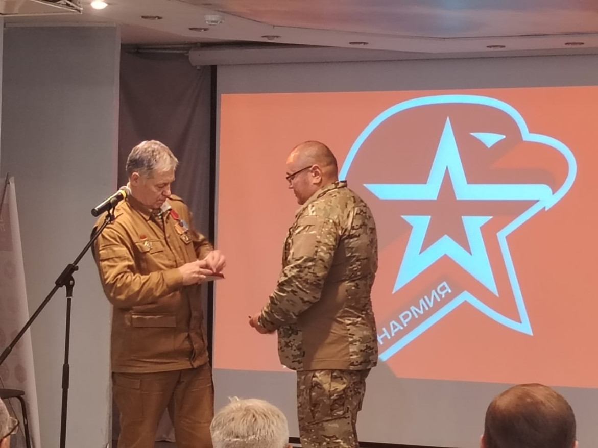 На закрытии слёта руководитель Якутского республиканского отделения »БОЕВОЕ БРАТСТВО» Анатолий Аракчеев вручил медаль «За патриотическое воспитание подрастающего поколения» члену организации Спартаку Колесову.