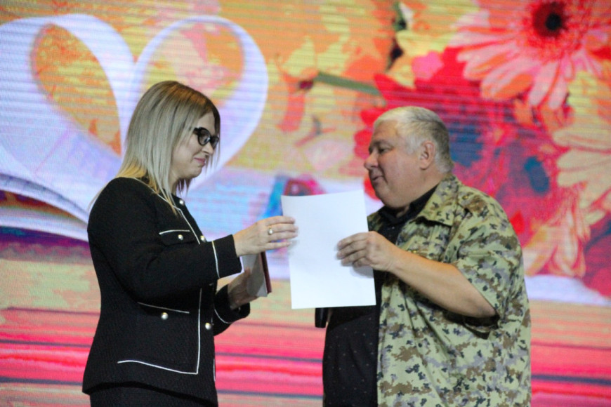 На праздновании начальник Управления образования Ейского района Лидия Браун за проведенную работу по оказанию гуманитарной помощи бойцам СВО была награждена от лица Ейского местного отделения «БОЕВОГО БРАТСТВО» медалью «За содействие в СВО».