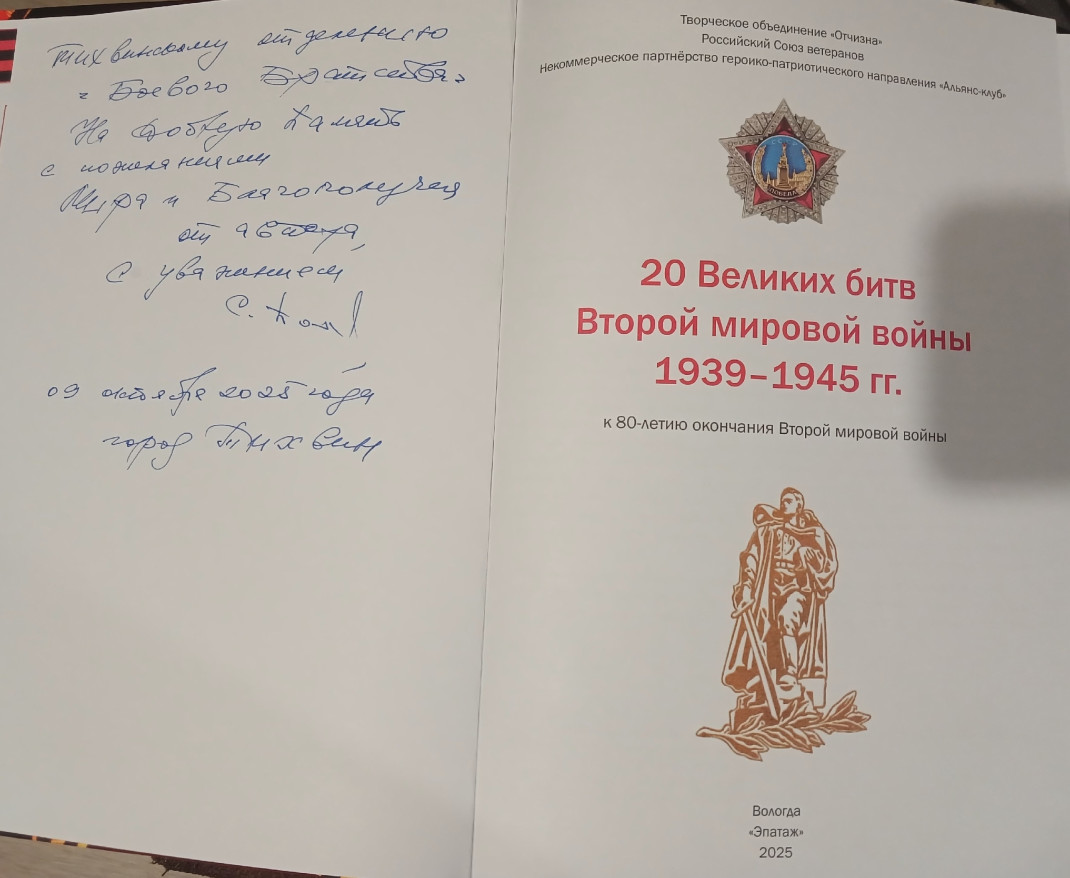 10 октября в школе № 4 в Тихвине прошла презентация книги «20 великих битв Второй мировой войны».